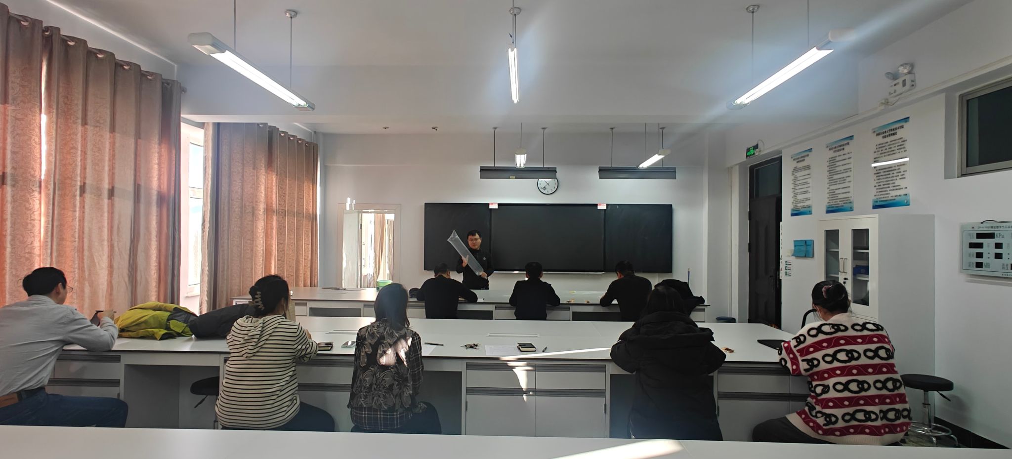 为助力新教师成长、夯实教学基本功、提升课堂质量,2025 年 12 月 25 日上午 10 点 30 分,理化教研室在实验楼物理实验室开展新进教师试讲教研活动。新入职的马鸿泽老师主讲《伯努利方程》,基础课教学部副主任樊勇、刘新元莅临指导,全体教研室教师参与观摩研讨。